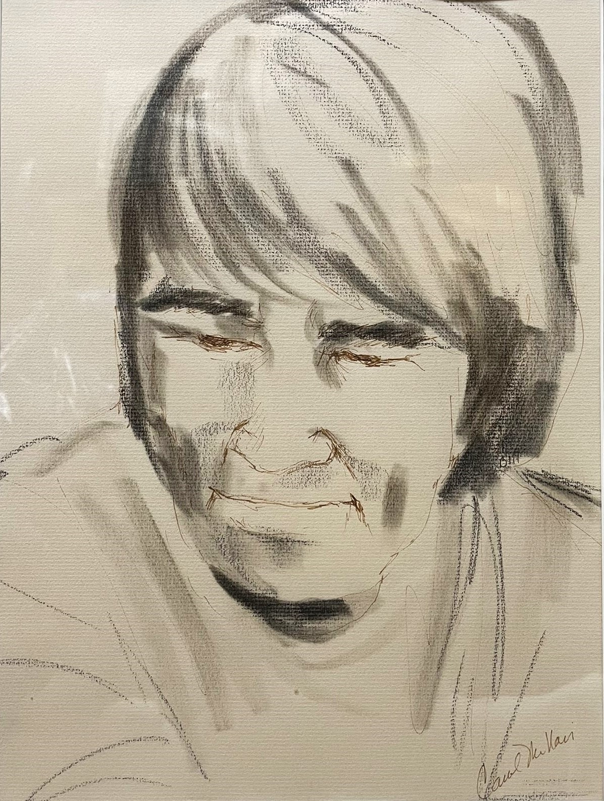 One evening during class, Carol did a sketch of my father, and gave it to him. The face is made up of fine lines, done with a pen, while the hair and shadows are represented by several bold strokes of a charcoal stick. It’s a good likeness, and I remember being impressed it was done so quickly – I also remember my father’s smile as he showed it to me, minutes after it was finished. He treasured that drawing, and it was soon framed and hanging.