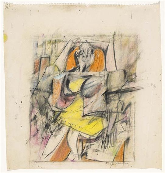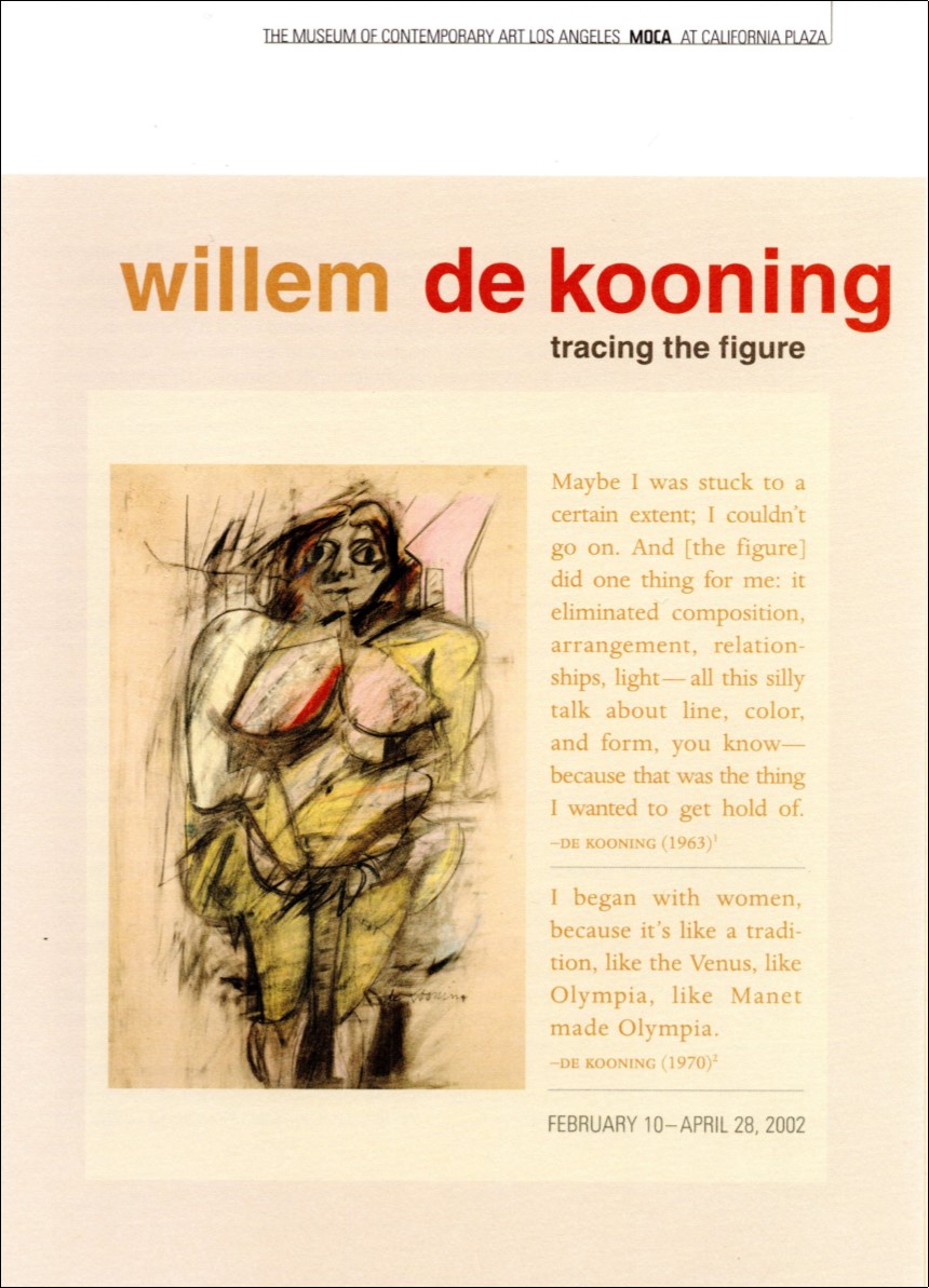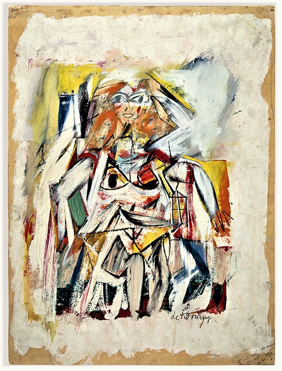 While pretending to attend community college in the early/mid-1980s, I was enrolled in a drawing class in which the teacher described several of my sketches as “de Kooningesque.” At the time, I had very little knowledge of Willem de Kooning’s achievement, and wasn’t familiar with much beyond Woman I (1950-52) and Woman and Bicycle (1952-53), so I took her remark as a cue to investigate his work. I was immediately entranced by his early 1940s Women series – I loved the push/pull dynamic which results from the blurred distinction between the figure and ground. I loved the juxtaposition of the modeled and the flat portions of the fragmented bodies. I loved the geometric shapes which only minimally suggest interior environments. Although de Kooning subsequently painted many other more celebrated series, those early Women continue to be among my favorites in an oeuvre as rich as any ever produced. I soon became a fan of both his paintings and his drawings from all periods of his career, and over the years have been lucky enough to have seen quite a lot of his work, in both group and solo exhibitions.