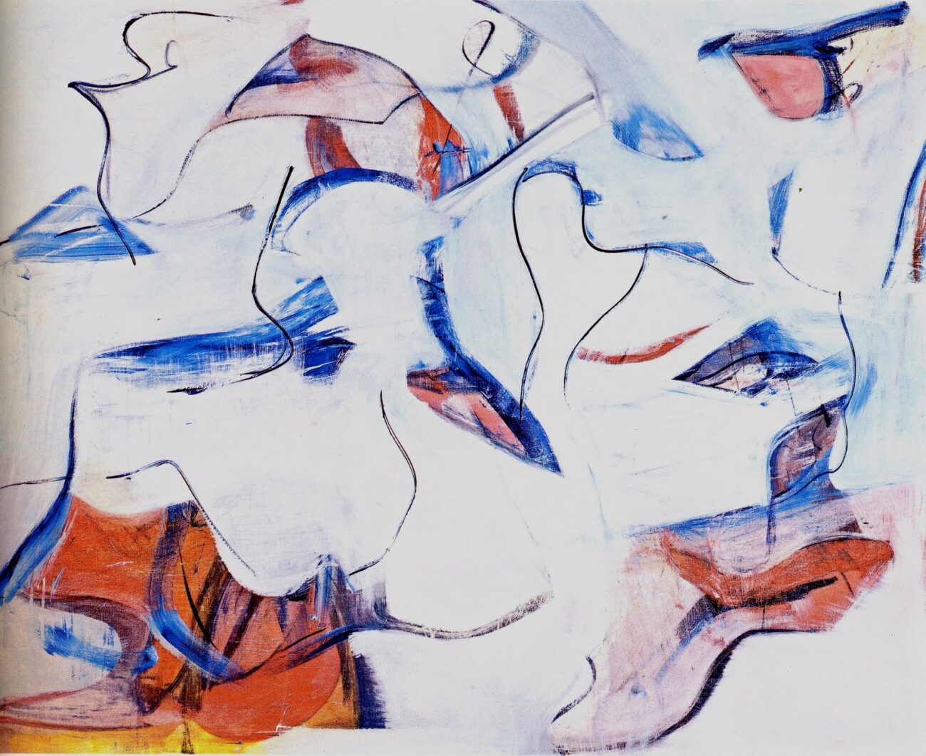 The first time I visited what was then the new San Francisco Museum of Modern Art on Third Street was in 1995 to see the de Kooning show The Late Paintings, The 1980s. It was the first time a large selection of the titular work had been seen, and there was much talk about de Kooning’s late ’80s Alzheimer’s diagnosis; how much of a hand his assistants had had in producing the work; and whether the paintings were worthy of being considered part of his oeuvre. It has been over twenty-five years since I saw the show, but I do distinctly remember two specific impressions I had – one: that the paintings seemed to change over the course of the day, going from subtle and elegant to stark,1 and two: while a disease was ravaging his mind, de Kooning was still a better painter than anyone else. The 1980s work comprises an evolving yet coherent period which is the most lyrical of his career – although there are similarities between these paintings and those of other earlier periods, the simplified palette and open compositions make them very different from any of his prior work.